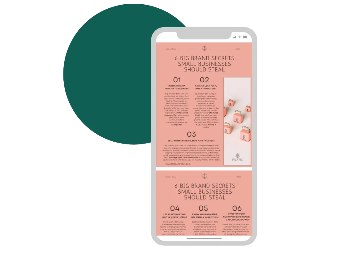 At Rose & Root, we bring big brand secrets to small businesses, helping you position yourself like an industry leader—without the complexity or overhead.